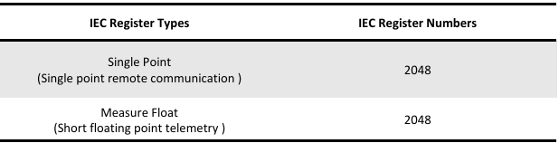 The IEC gateway supports the conversion of various protocols into the IEC104 protocol or IEC61850 protocol. The register types and maximum number of points supported by the IEC gateway are listed in the table below.
