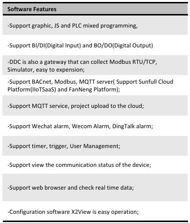 DDC Module DDC1002-8200 (1 ethernet, 2 serial port, 8DI, 2DO, dynamically supports 512 points) only supports collecting Modbus RTU/TCP and Simulator driver, and convert it to BACnet IP and Modbus TCP servers simultaneously. Using X2View software to make the project(can¡¯t make configuration pages). User can configure the project according to the communication protocol document of on-site Modbus RTU/TCP device , and convert it to a standard BACnet IP and Modbus TCP server. After monitoring successfully on the local monitor mode, upload the project file to DDC module to access the data of on-site device (Note: The decimal address of the collection end starts from 1 (Base1), and the hexadecimal address starts from 0 (Base0); The Modbus register base address of the transfer end starts from 1 (Base1)