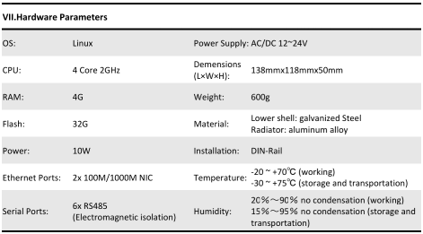 - Gateway features a built-in InfluxDB time series database; supports customizable storage cycles with a maximum retention period of 3 years;
