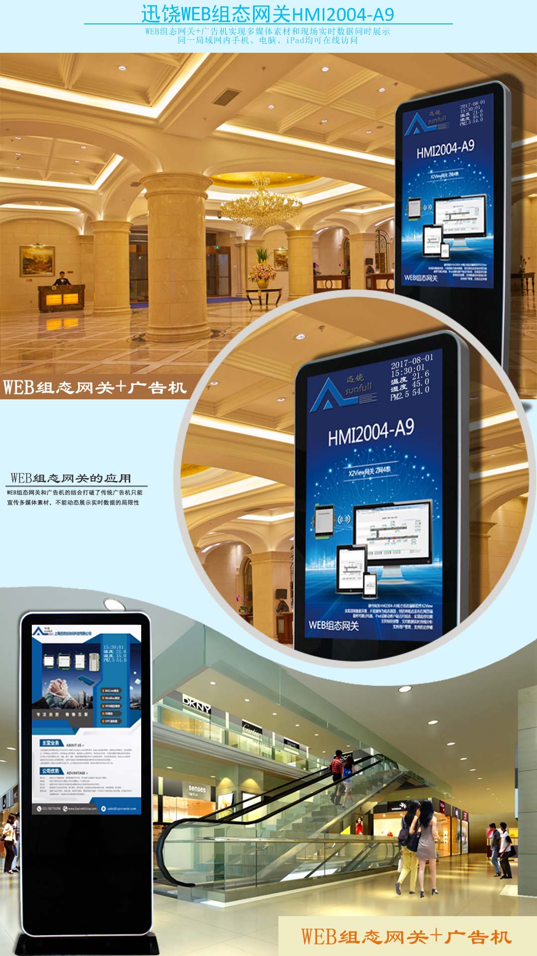1.项目概述 迅饶组态网关与液晶广告机对接 2.需求分析 2.1问题描述 图片的轮播,时间、温湿度显示和实时更新 2.2网关介绍