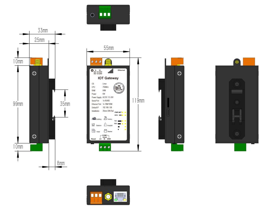 IOT边缘组态网关HMI1001-ARM-4G有1个网口,1个RS485串口,动态支持256点,支持采集500多种协议同时转为BACnet服务器、Modbus服务器、OPC UA服务器、MQTT服务器、IEC61850服务器(需定制),开放HTTP WEB服务被第三方的系统集成。同时具微信报警、短信平台报警、钉钉报警、邮件报警、MQTT服务、工程上传云端等功能。网关使用X2View软件做配置 。用户可根据现设备的点表进行配置,转成标准BACnet服务器、Modbus服务器,上传到硬件网关中,BACnet/Modbus客户端就可以通过网关访问现场设备的数据。 注意:该网关采集端Modbus寄存器10进制地址是从1 (Base1)开始,16进制地址从0 (Base0)开始;转发端的Modbus寄存器基地址都是从1 (Base1)开始。